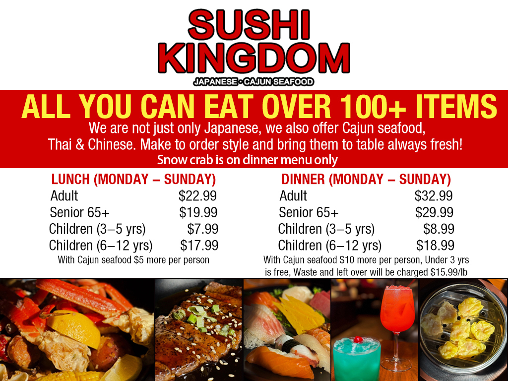Our skilled and passionate chefs craft each dish using only the freshest ingredients. With bold, exotic flavors and savory sauces, every plate delivers a rich taste journey. From the moment the aromas hit your senses, you’ll know you’re in for something special — only at Sushi Kingdom.